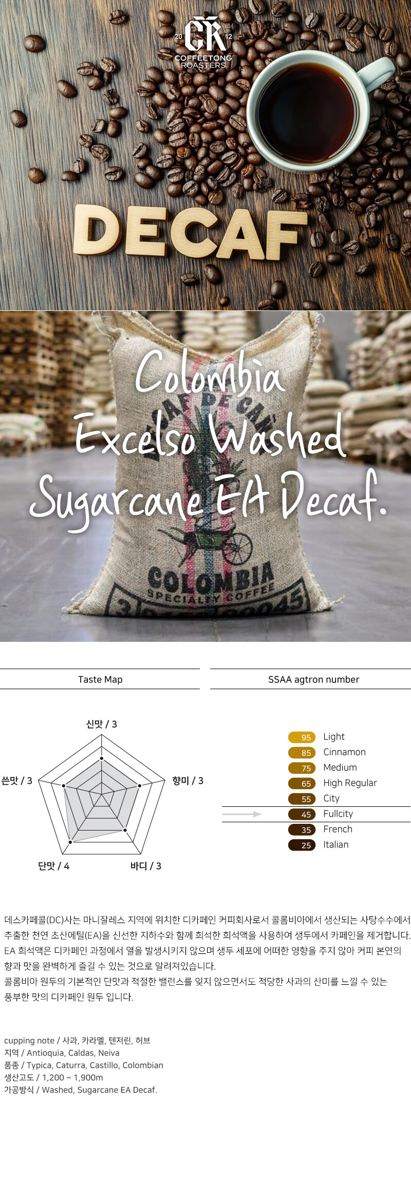 디카페인 콜롬비아 슈가 케인 (Decaffein Colombia Sugar Cane)